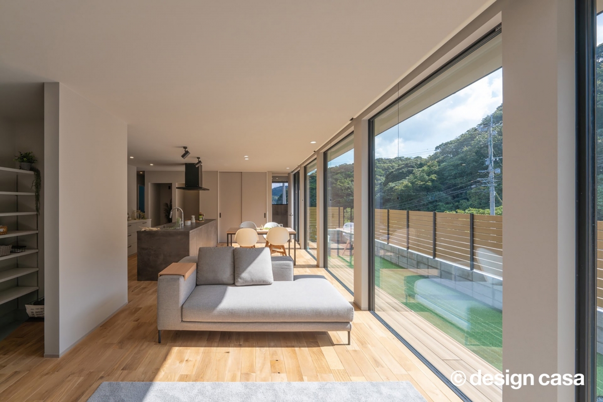 開放的に過ごす空間と、しっかりと落ち着けるプライベート空間を明確に分けるプランをご提案しました。個室は静かに休める環境を整え、オープンスペースは家族だけが安心して楽しめるスペースとして活用。周辺環境の中から必要な景色や光だけを取り込み、不要な要素は適切に遮っています。