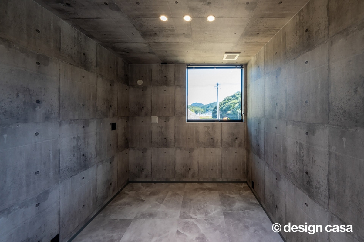 全面コンクリートの重厚な雰囲気のトレーニングルームでオーナー様の健康維持にも大きく貢献しています。リビングの柔らかな雰囲気とは対照的な部屋にしたことで気持ちを切り替えることができます。
