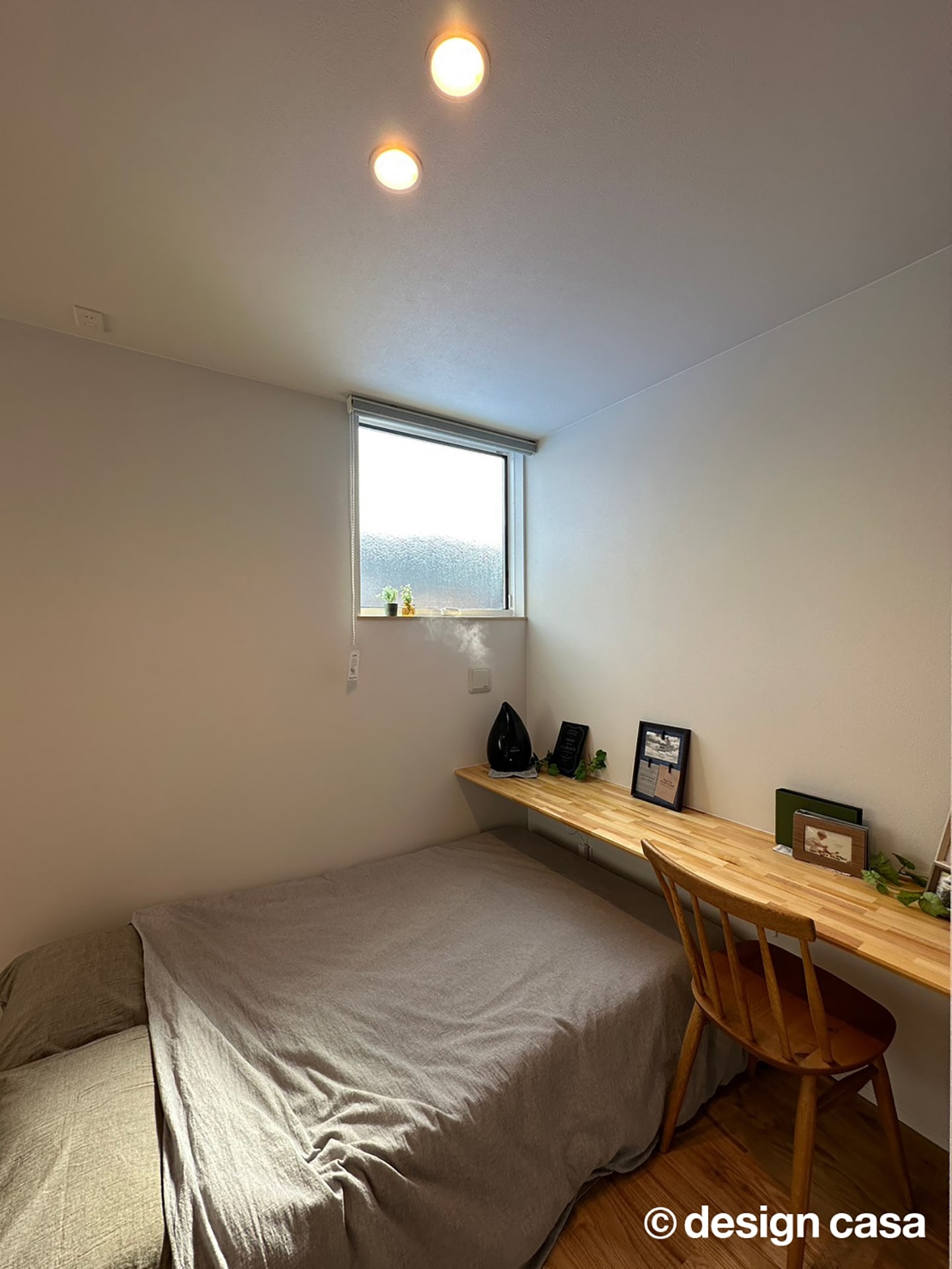 子ども部屋は、窓から差し込む自然光が部屋全体を明るく照らし、心地よい空間が魅力です。壁面にはカウンターデスクが備え付けられているため、学習や読書などに集中できる環境が整っています。