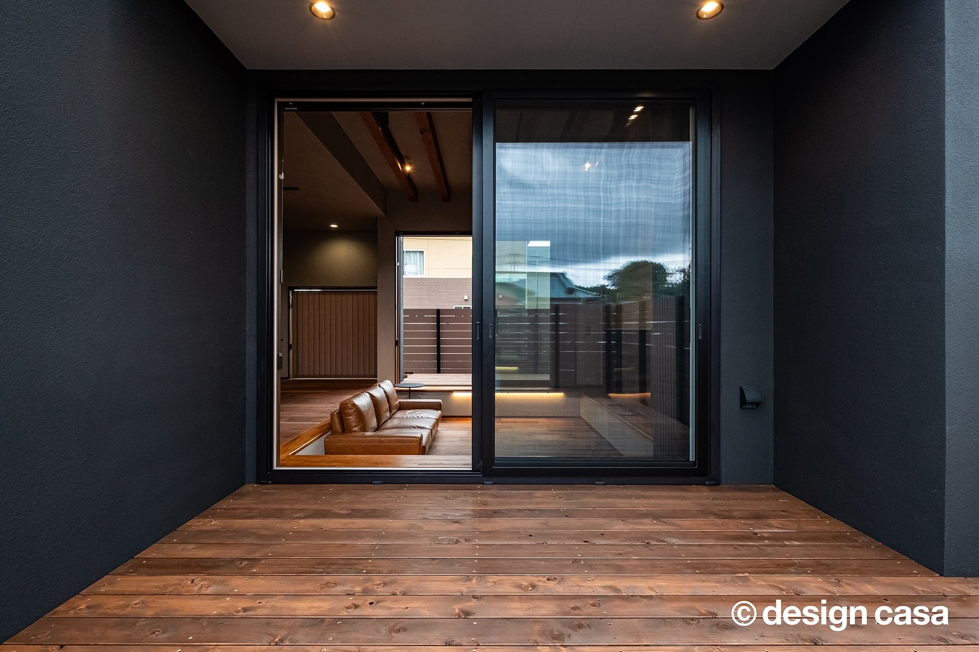 また、床材には木の質感を活かしたウッドデッキを採用し、裸足でも気持ちよく過ごせる仕上がりが特徴です。朝はコーヒーを片手に静かな時間を楽しみ、夕方には家族でくつろぐなど、時間帯やシーンによって使い方が広がります。