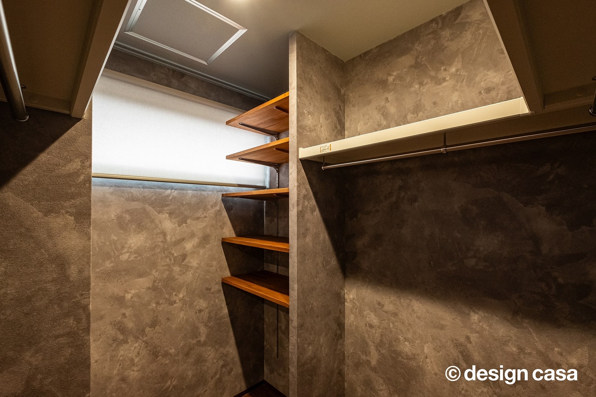 色味や柄の出方にもこだわり、照明の当たり方によって表情が変わる点も魅力のひとつです。建築家とともに壁紙の質感や色調を細かく検討することで、長く住み続けても飽きのこないデザインに仕上げました。