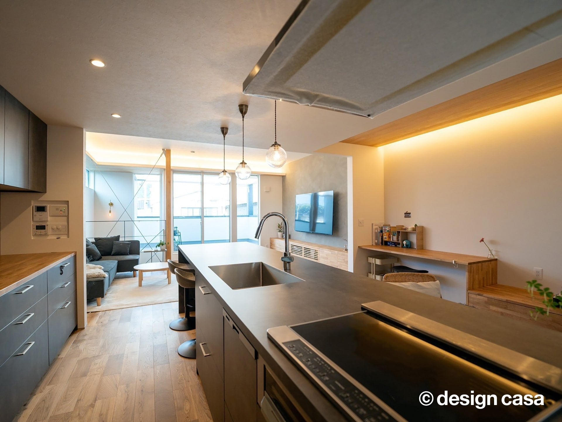 動線や高さ、視線の抜けを工夫することで狭さを感じさせない広がりと心地よさを実現しています。また、その中で家族それぞれの居場所や趣味の時間、日常を楽しむための工夫が、住まいの随所に設けられているのが魅力です。建築家とともに理想を整理し、優先順位を見極めながら設計したことで、限られた空間の中に欲しかった暮らしを無理なく詰め込んだ住まいです。